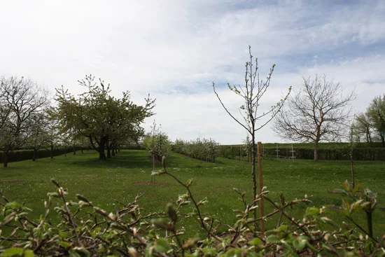 Die Garage wurde an das bestehende Vereinshaus angebaut und im Jahr 2008 mit dem Unterstand für die historische Obstpresse vervollständigt. Wie in jedem Garten werden immer wieder ältere Bäume gerodet und neue Sorten eingepflanzt. So sind nicht nur Bäume mit schwach wachsenden Unterlagen, sondern auch Halbstämme und Hochstämme im Obstbaugarten eingepflanzt.