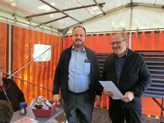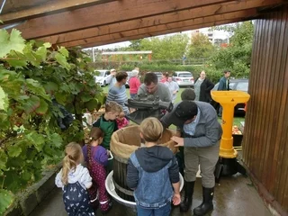 Der Wettergott meinte es gut. Bei warmen, fast sommerlichen Temperaturen strömten die Liebhaber des Mostes geradezu in den Obstbaugarten. Drei fleißige Mitglieder fingen schon um 9 Uhr mit der ersten Pressung an, damit um 11 Uhr mit Beginn des Festes der erste Süßmost schon ausgeschenkt werden konnte. Um 13 Uhr wurde dann mit den Kindern gepresst, die mit Feuereifer dabei waren. Aber auch sonst wurde es für die Kleinen nicht langweilig, war doch ein Kinderquiz rund um den OBV zu lösen, oder es konnte rund um den Apfel gebastelt und gemalt werden. Auch kulinarisch war wieder aufs allerbeste gesorgt. Schmeckten doch Schlachtplatte, Kutteln oder Kartoffelpuffer mit Apfelmus wieder hervorragend. Und ob lieber Zwiebelkuchen oder ein Stück Obstkuchen oder Torte zum Kaffee mundete, musste jeder selbst für sich entscheiden. Und auch unser politischer Vertreter in Berlin, Marc Biadacz ist unserer Einladung gefolgt und ließ sich ein Gläsle Süßmost schmecken. Am Ende des Tages waren sich wieder alle einig, ein gelungenes Fest, dass aus dem Veranstaltungskalender des Obstbauvereins nicht mehr weg zu denken ist.