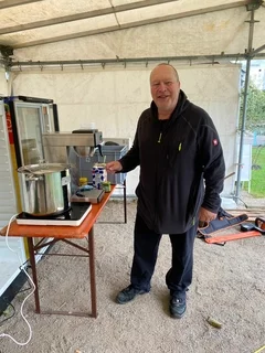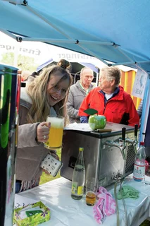 Der frisch angesetzte Most von Jutta und Martin Skokan war, wie jedes Jahr, ein Highlight des Festes und wurde von den Gästen hoch gelobt. Die Kombination aus traditioneller Herstellung und regionalen Zutaten traf den Geschmack der Besucher. Als weiteres Highlight hatte sich Martin Skokan aufgrund der kühleren Temperaturen etwas Besonderes ausgedacht: Ein Teil des Mostes wurde zusammen mit dem frisch gepressten Apfelsaft und Gewürzen erhitzt und als Glühmost angeboten. Dieser warme, herbstliche Drink kam bei den Gästen hervorragend an und wurde schnell zu einem gefragten „Goodie“ auf dem Fest, besonders in den etwas kühleren Abendstunden.