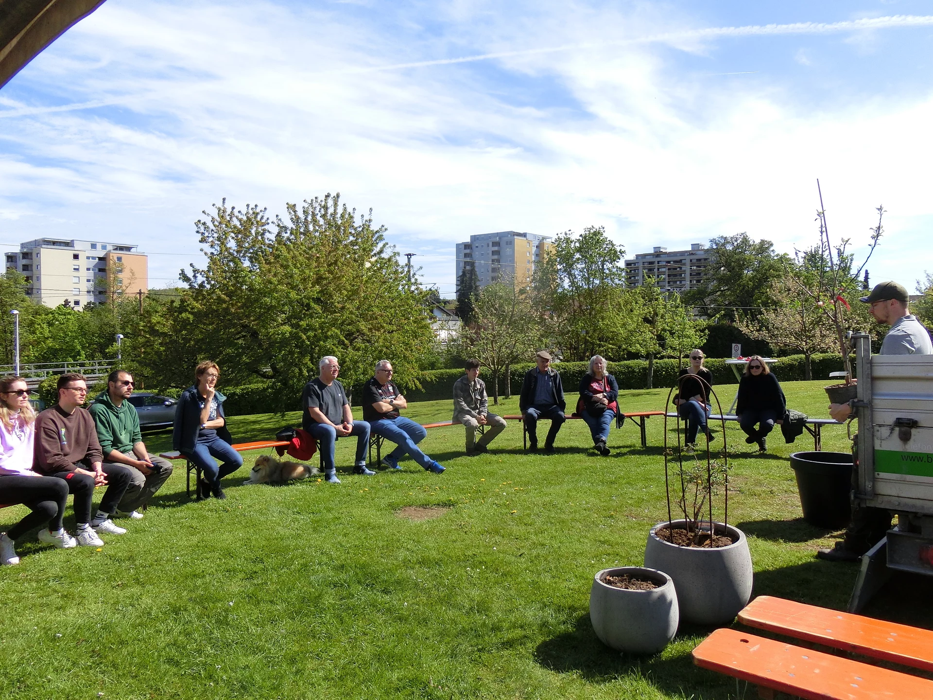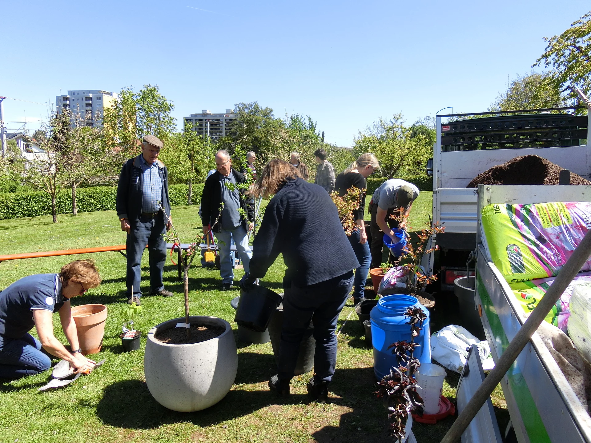 Nicht jeder nennt ein Gütle sein eigen und hat dort Obstbäume oder Beerensträucher. Dass man trotzdem nicht auf einen Himbeer- oder Johannisbeerstrauch oder gar ein Bäumle verzichten muss, dazu wurde zu „Obschd im Topf“ eingeladen. Unser Gartenwart Florian Gohl erläuterte zuerst auf was bei Topfgröße, Standort, Auswahl der Erde usw. zu achten ist. Dann durfte jeder seinen vorher bestellten Setzling in den Topf einpflanzen.