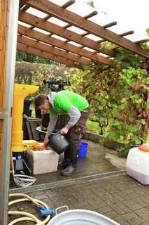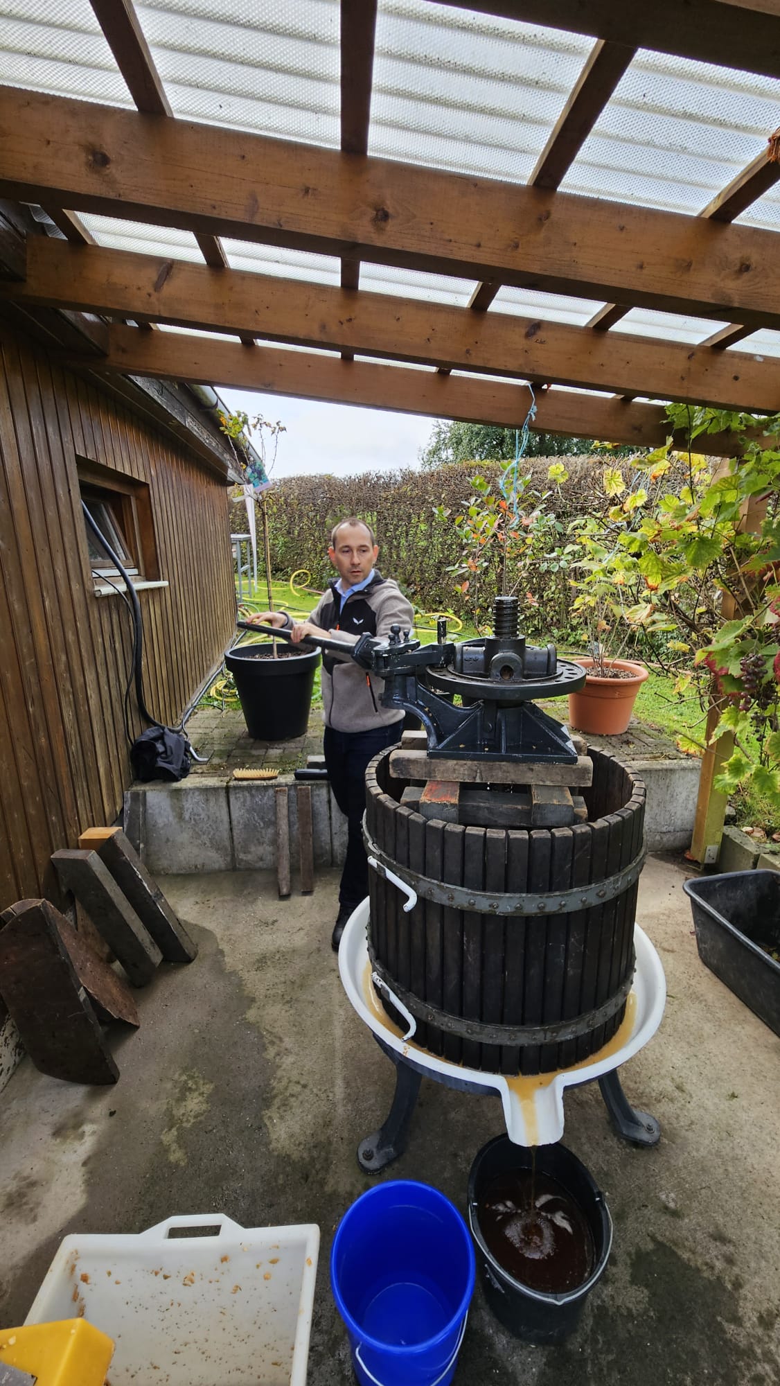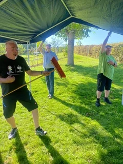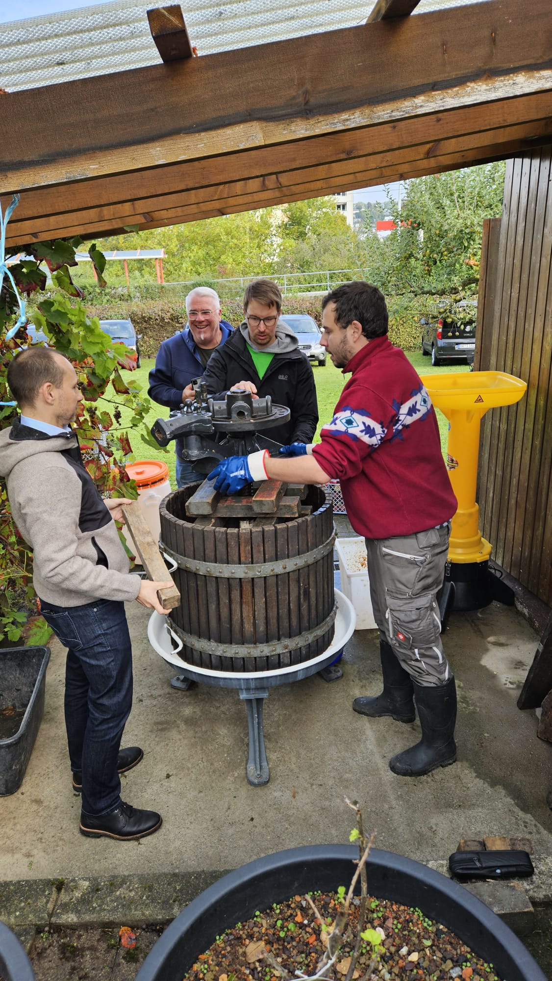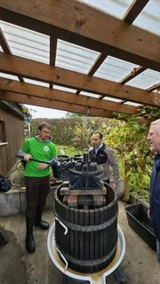 Der frisch gepresste Apfelsaft, der aus unseren eigenen Äpfeln an der historischen Presse von Roman Güwen und Florian Gohl gewonnen wurde, war das zentrale Highlight des Tages. Oberbürgermeister Stefan Belz beteiligte sich aktiv am Pressen und sorgte damit für besondere Begeisterung bei den Besuchern und Mitgliedern des Vereins.