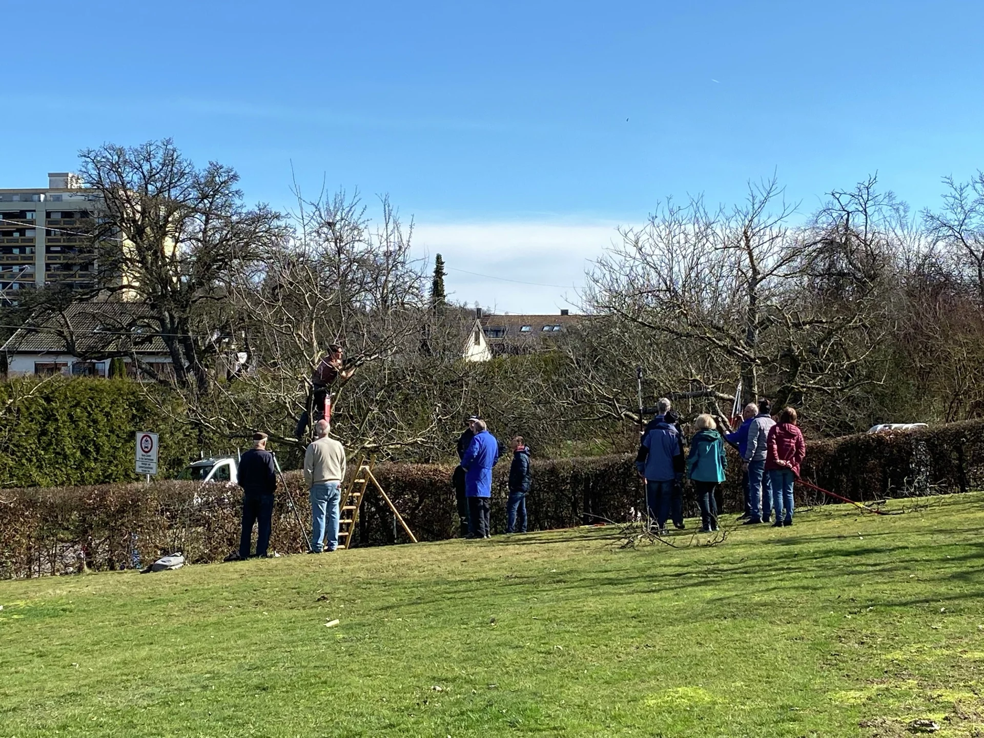 Bei unserem diesjährigen Winterschnittkurs bei herrlichstem Wetter, fanden sich über 20 interessierte Personen in unserem Obstgarten ein. Nachdem unsere Kursleiterin Magdalene Binder, die Anwesenden in einem Theorieteil mit genügend Fachwissen versorgte, ging es im Anschluss mit unseren Baumfachwarten in kleinen Gruppen an die Bäume. Unter dem Motto „learning by doing“, konnten die Teilnehmer selbst Hand anlegen und unter Anleitung den ein oder anderen Baum im Garten schneiden.