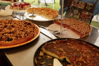 Das kulinarische Angebot war ebenso vielfältig wie beliebt. Es gab Kutteln in Mostsoße (nach einem Rezept von Günter Schöck, unserem ehemaligen Vereinsvorsitzenden), Schlachtplatte und Bauernbratwürste mit Sauerkraut oder Saitenwürstchen mit Brot. Die vegetarischen Gäste konnten sich an den Kartoffelpuffern mit selbstgemachtem Apfelmus oder an einer Quiche erfreuen. Das Kuchenbuffet mit über 30 selbstgemachten Kuchen, darunter Zwiebelkuchen, Krautkuchen, Petersilienkuchen und frischen Obstkuchen, fand ebenfalls großen Anklang. Drei kunstvoll dekorierte Torten von Rosemarie Kurz rundeten das Angebot perfekt ab. Für die Gäste, die bis zum Abend blieben, wurde schließlich noch ein herzhaftes Vesperbrett mit einem Schnäpsle vom Furtrain serviert.